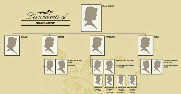 Family tree poster on official paper of the descendants of the Alberta, Canada reintroduction |